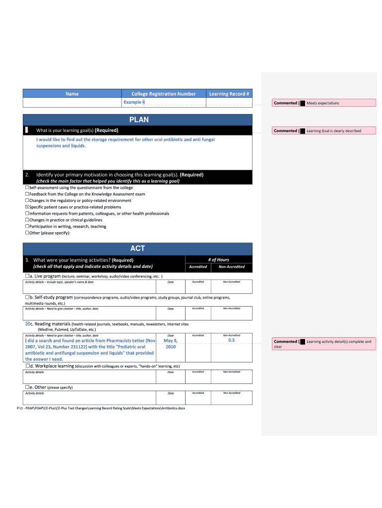 Name CollegeRegistrationNumberLearningRecord#Example4Commented MeetsexpectationsCommented LearningGoalisclearlydescribedCommented clearLearningactivitydetail(s)complete and PLAN 1. Whatisyourlearninggoal(s)(Required)Iwouldliketofindoutthestoragerequirementforotheroralantibioticandantifungal