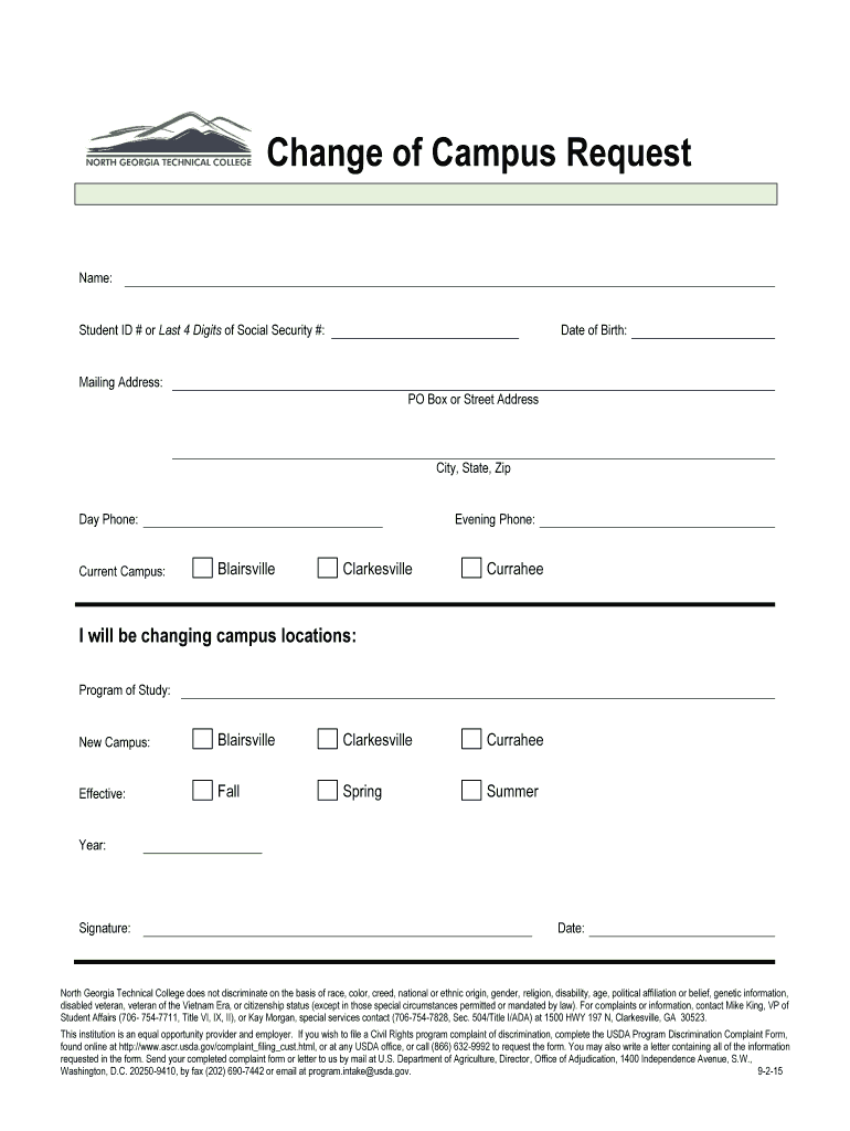 Get the free Change of bCampus Requestb - North Ga Technical College - northgatech