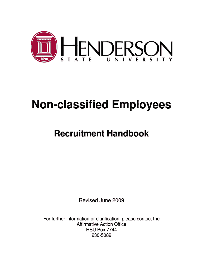 Nonclassified Employees Recruitment Handbook Revised June 2009 For further information or clarification, please contact the Affirmative Action Office CSU Box 7744 2305089 Nonclassified Employees Recruitment