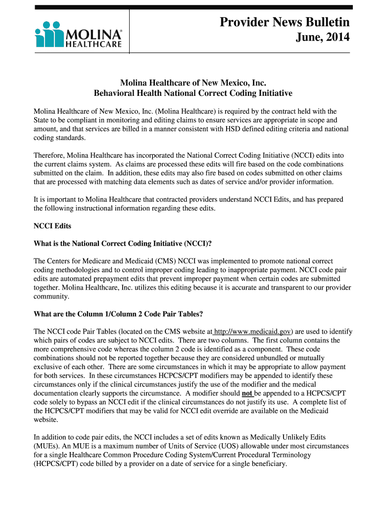 Get the free Behavioral Health National Correct Coding Initiative