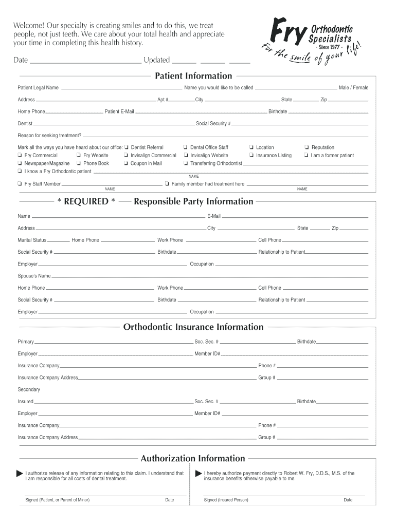 Get the free Patient Information - Fry Orthodontic S