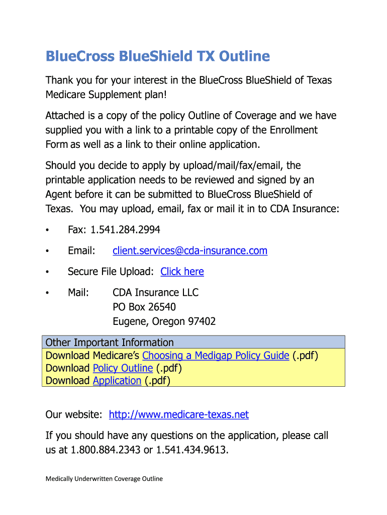 Fill out your bluecross blueshield tx outline online with pdfFiller!