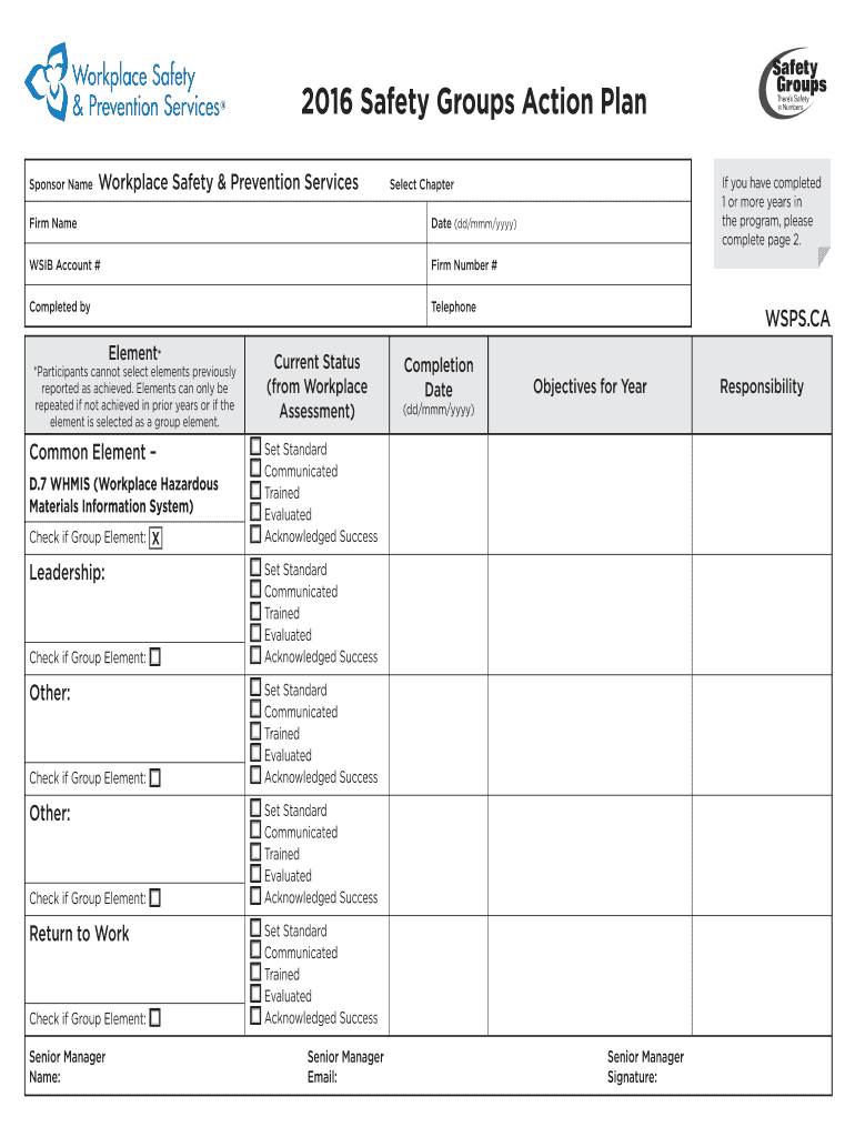 Get the free 2016 Safety Groups Action Plan - WSPS - Home