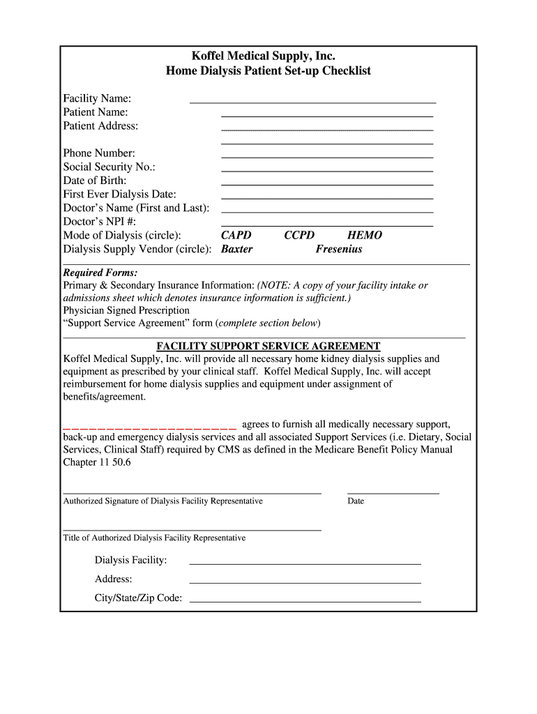 Get the free Koffel Medical Supply Inc Home Dialysis Patient Set-up