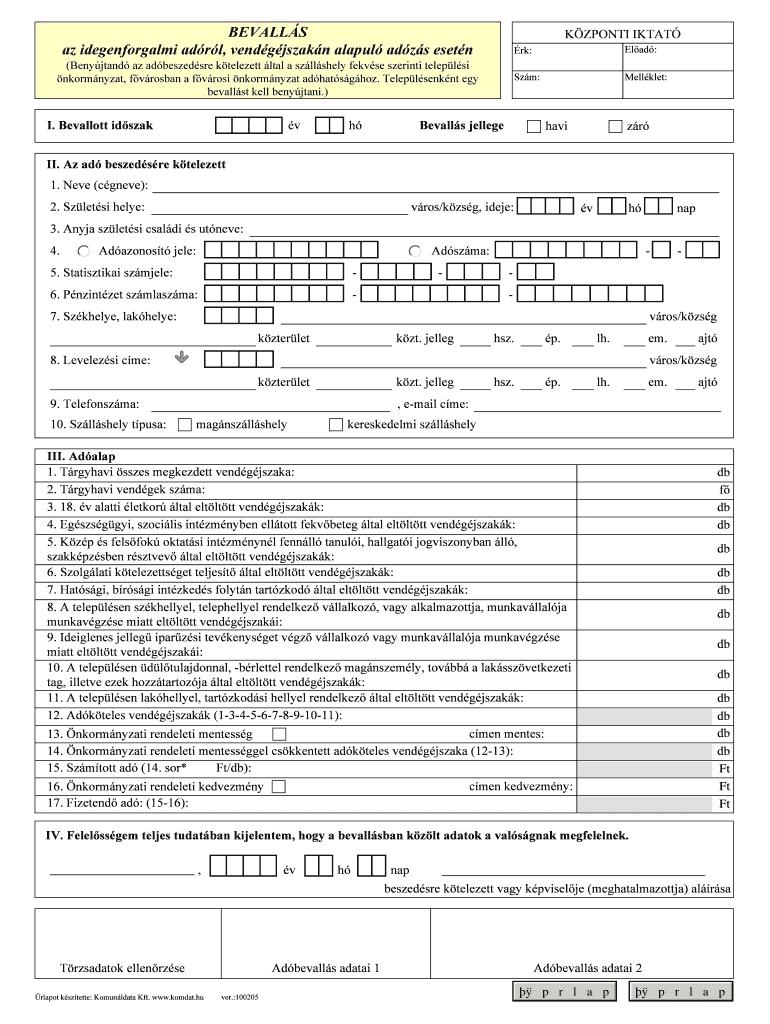 Bevalls az idegenforgalmi adrl is a declaration for tourism tax in Hungary.