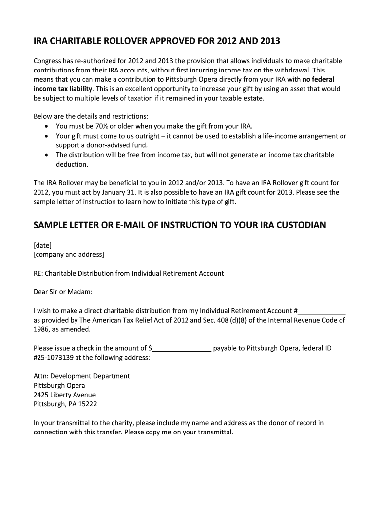 Get the free IRA Detail on Web page Sample Letter of Instruction 2doc - pittsburghopera