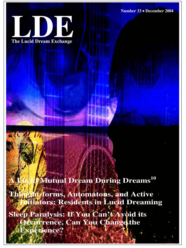 Number 33 December 2004LDE The Lucid Dream Exchange Lucid Mutual Dream During Dreams10 Thought forms, Automatons, and Active Initiators: Residents in Lucid Dreaming Sleep Paralysis: If You Can't Avoid