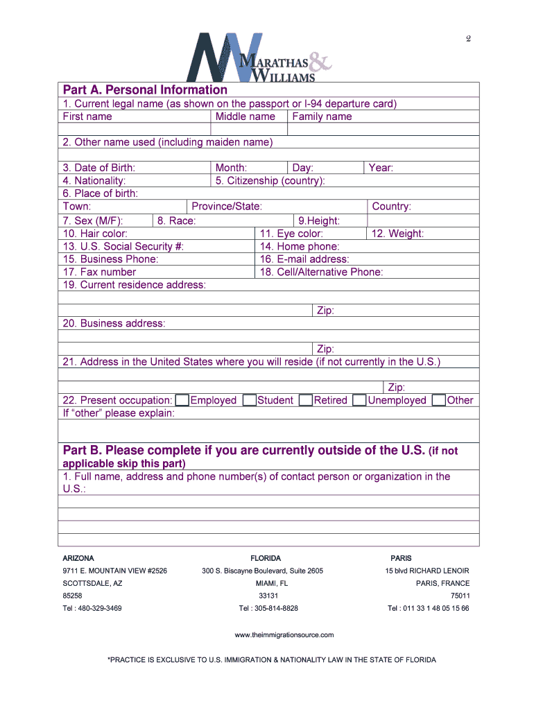 Get the free Immigration bQuestionnaireb - Marathas amp Williams PLLC