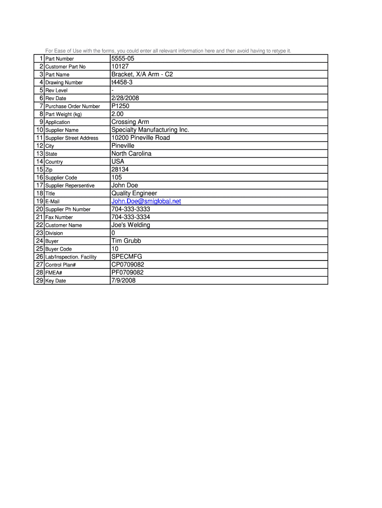For Ease of Use with the forms, you could enter all relevant information here and then avoid having to retype it. 1 2 3 4 5 6 7 8 9 10 11 12 13 14 15 16 17 18 19 20 21 22 23 24 25 26 27 28 29 Part