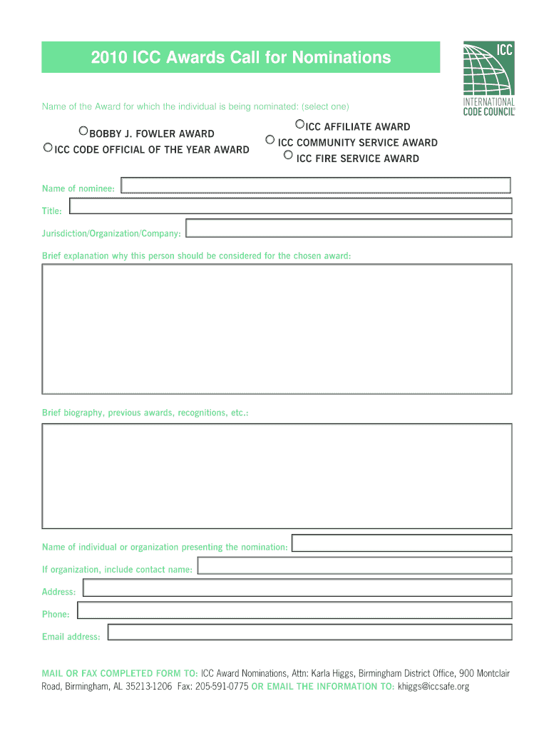 To fill out the N ICC Awards Call, individuals or organizations need to provide information about the nominee, the award category, and the reasons for the nomination.