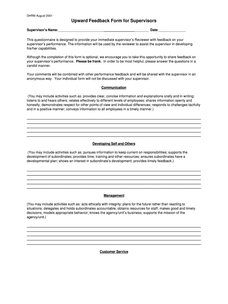 Get the free DHRM August 2001 Upward Feedback Form for Supervisors