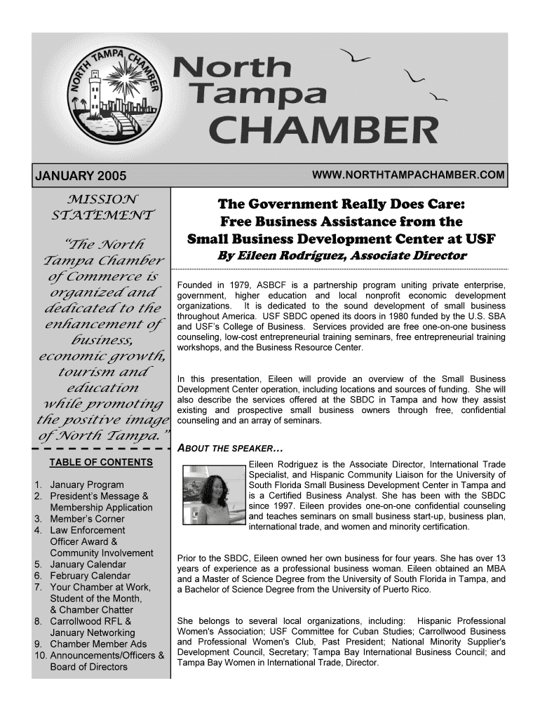 JANUARY 2005 MISSION STATEMENT The North Tampa Chamber of Commerce is organized and dedicated to the enhancement of business, economic growth, tourism and education while promoting the positive image