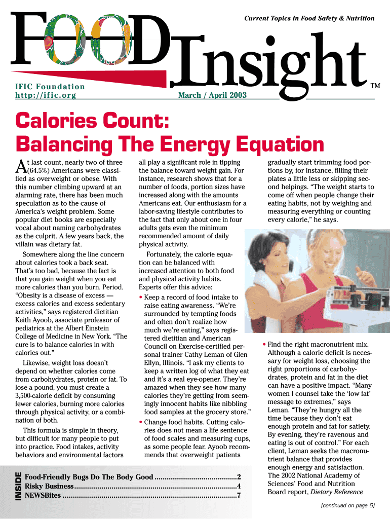 Current Topics in Food Safety & Nutrition IFIC Foundation http://if IC.org March / April 2003 Calories Count: Balancing The Energy Equation A INSIDE t last count, nearly two of three (64.5%) Americans