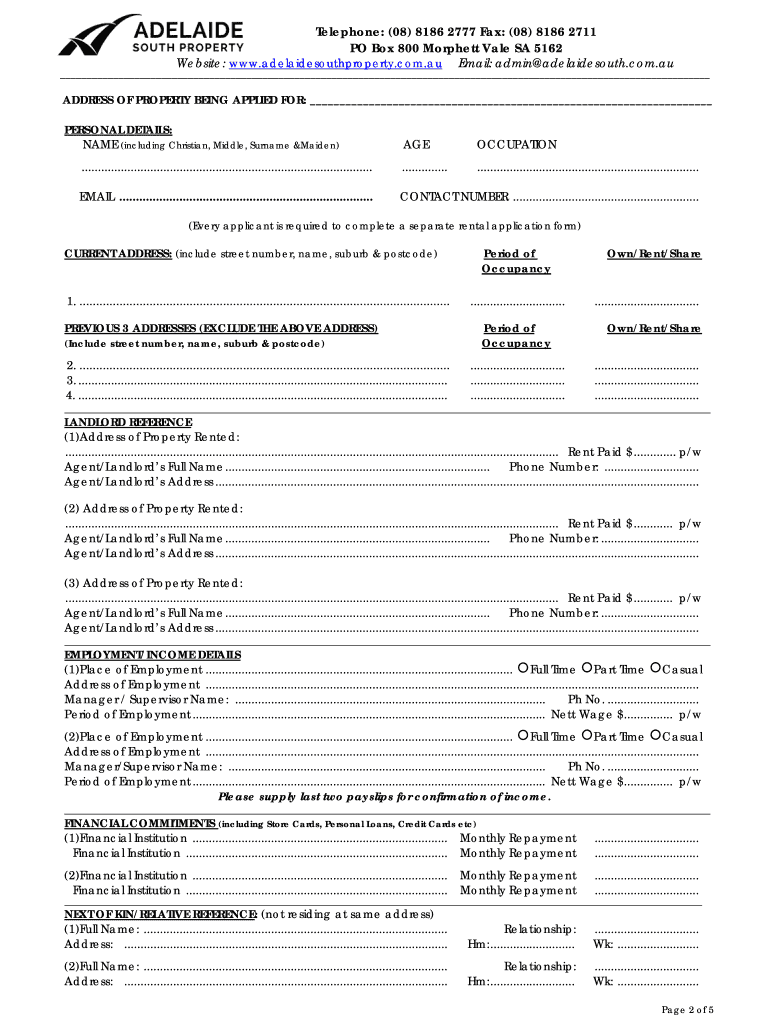 Get the free DIGITAL APPLICATION FORM Adelaide South Property rental