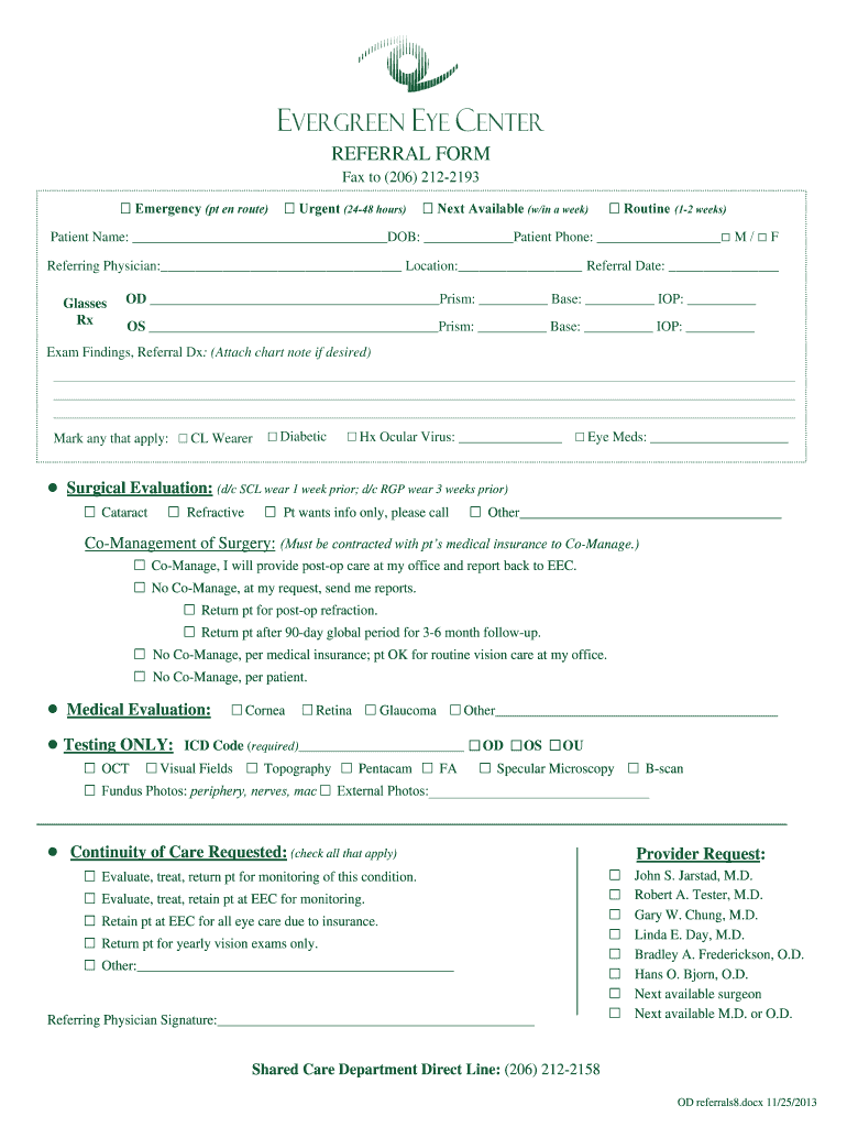Get the free BREFERRALb bFORMb - Evergreen Eye Center