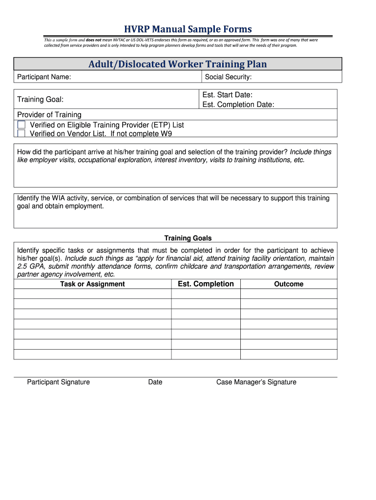 Get the free HVRP Manual Sample Forms Adult Dislocated Worker Training Plan - nvtac