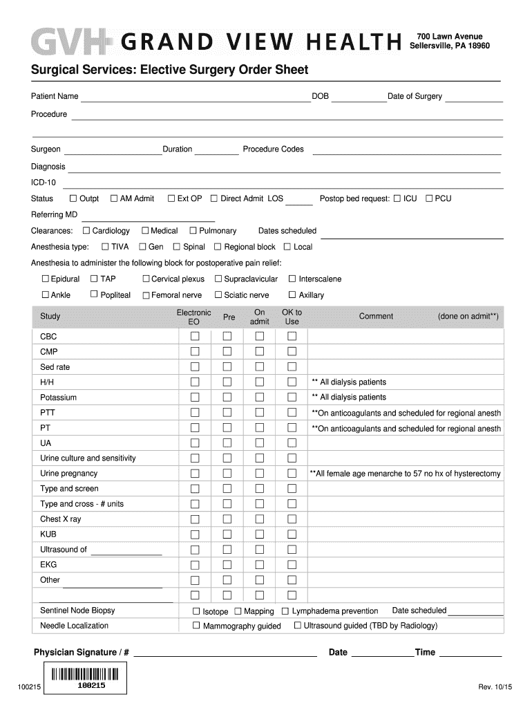 Get the free Surgical Services Elective Surgery Order Sheet - bgvhorgb