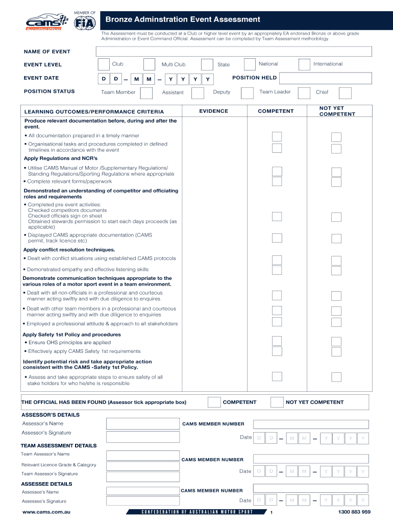 Fill out your bronze adminstration event assessment online with pdfFiller!