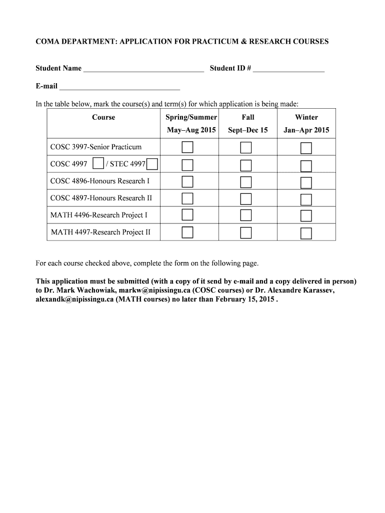 DEPARTMENT OF COMPUTER SCIENCE & MATHEMATICS POLICIES & PROCEDURES FOR RESEARCH AND PRACTICUM COURSES In accordance with Senate regulations (as per the academic calendar), all students wishing or