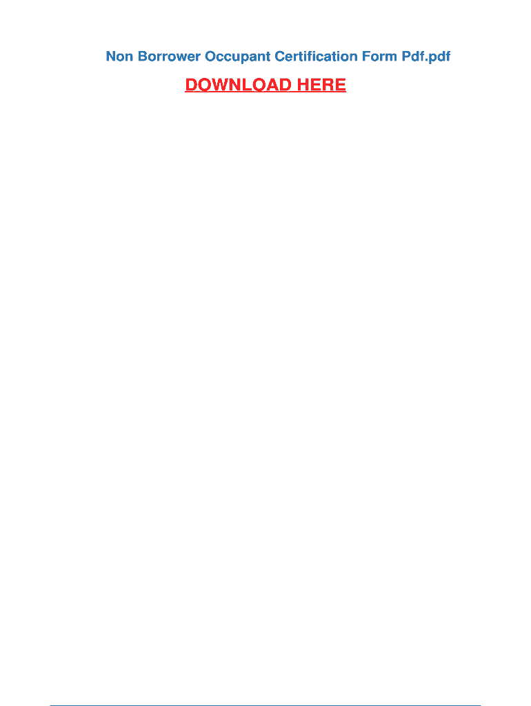 Get the free Non Borrower Occupant Certification Form Pdf