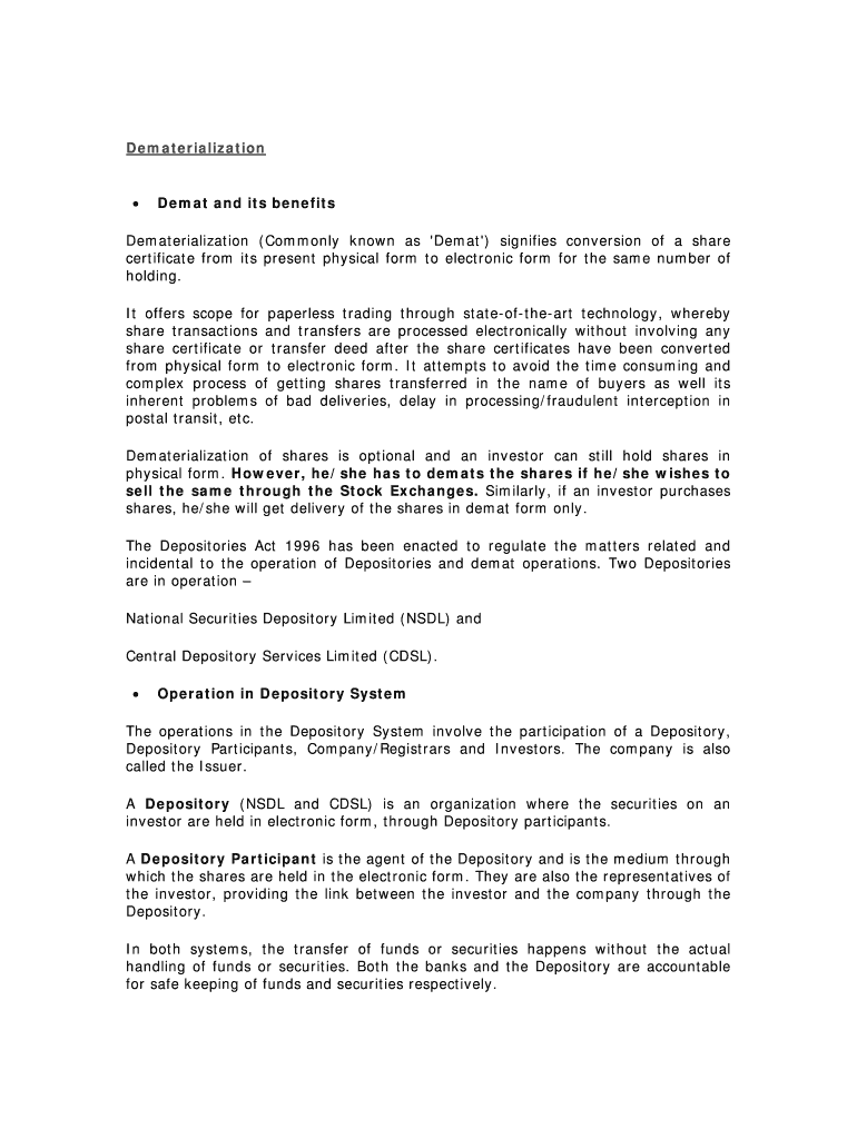 Fill out your demat and its benefits online with pdfFiller!