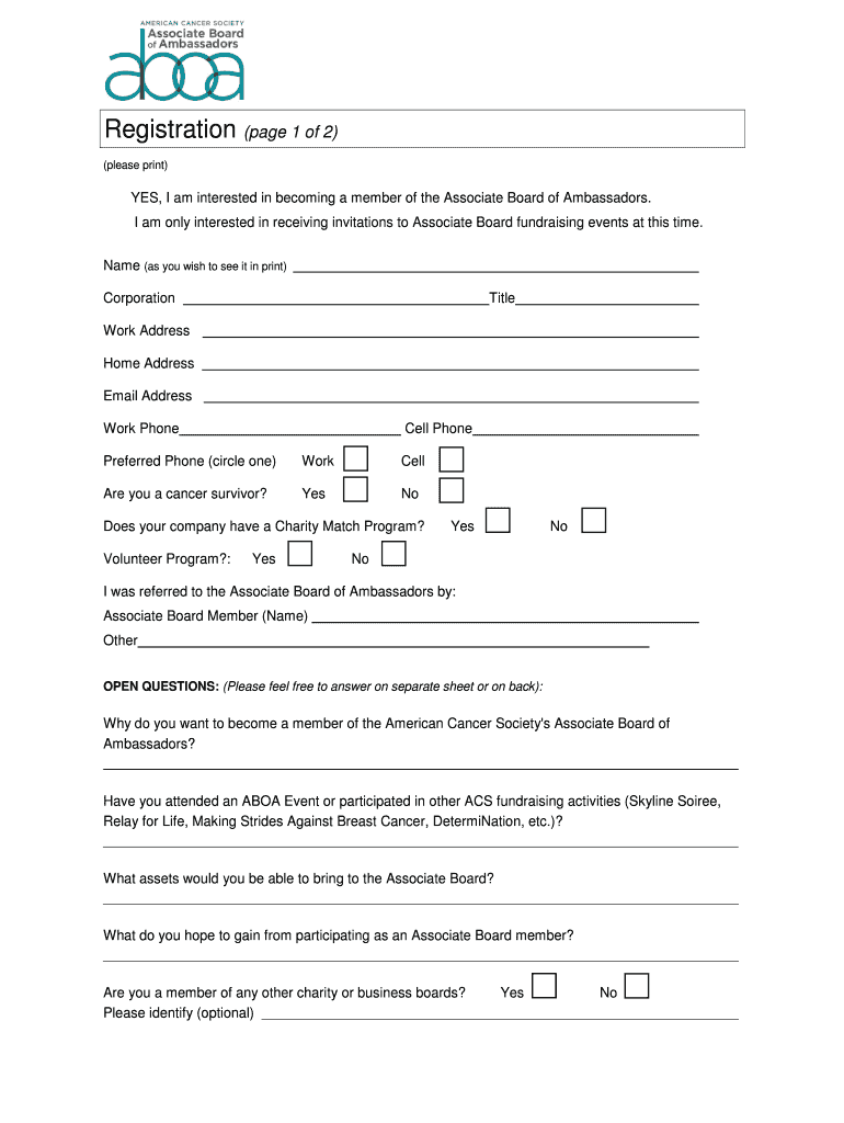 Get the free Associate Board of Ambassadors - acseventsorg