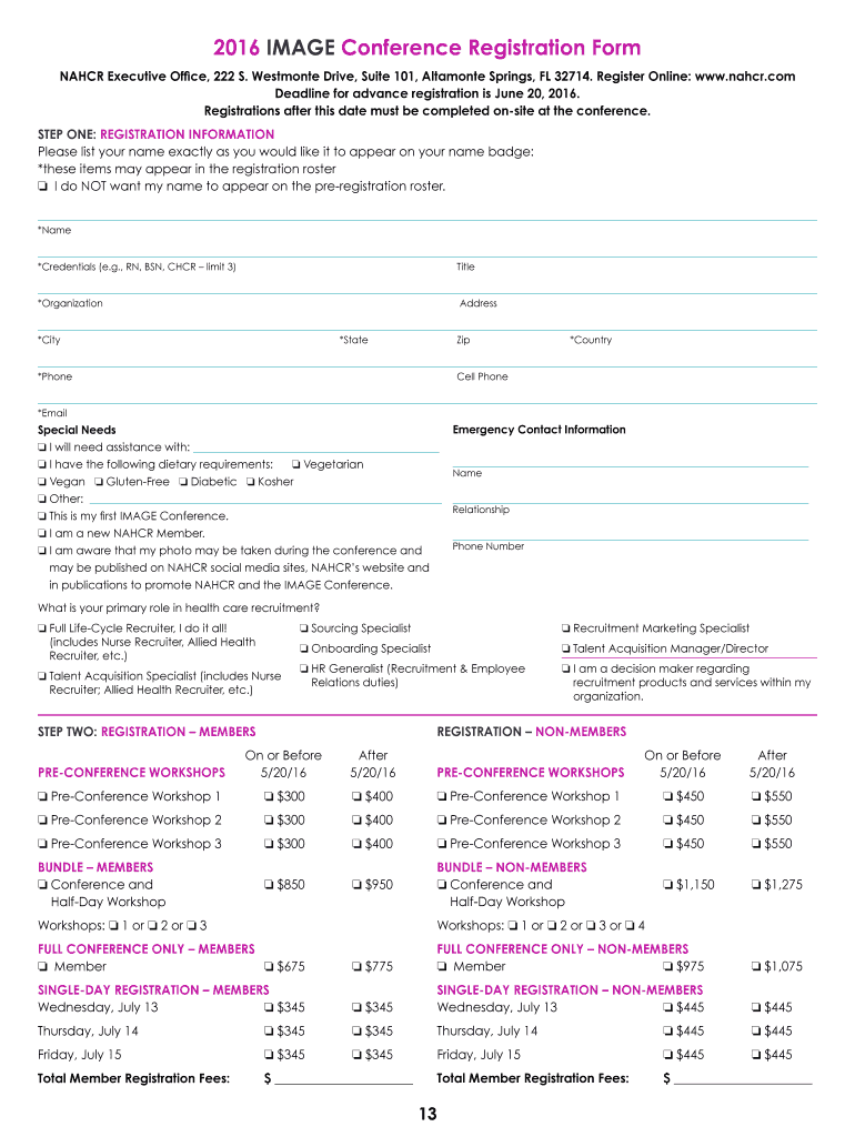 42 I M AG E CONFERENCE National Association for Health Care Recruitment ND ANNUAL Registration Brochure THE RECRUITMENT GAME WERE ALL IN! JULY 1215, 2016 THE COSMOPOLITAN OF LAS VEGAS, NV 42nd Annual