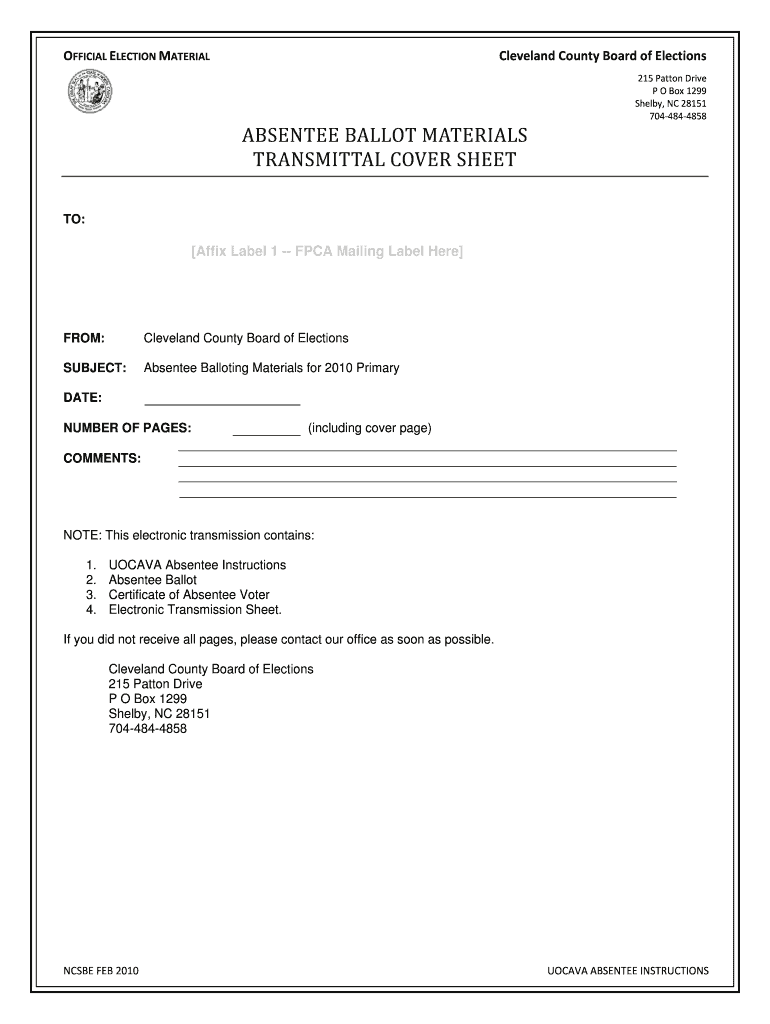 Get the free Absentee Ballot Materials Transmittal Cover Sheet