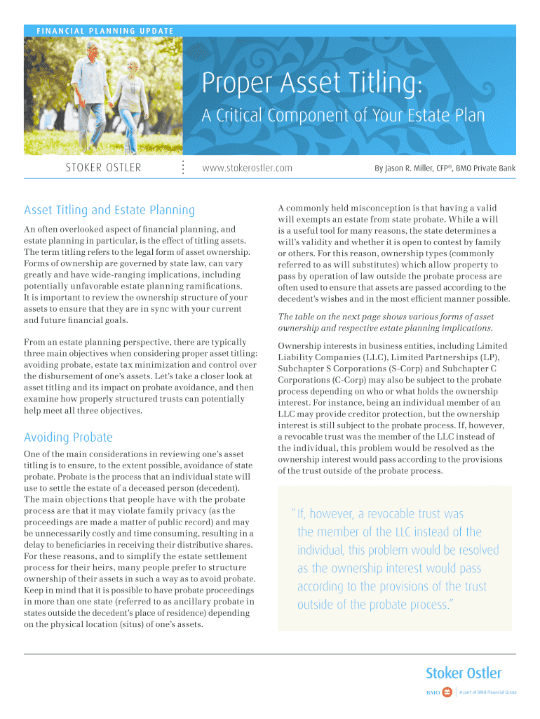Get the free Proper Asset Titling: