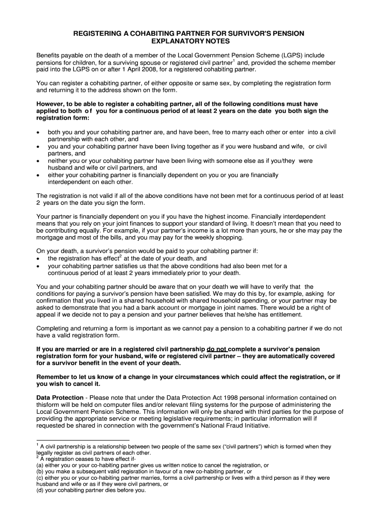 Get the free REGISTERING A COHABITING PARTNER FOR SURVIVORS PENSION - wiltshirepensionfund org