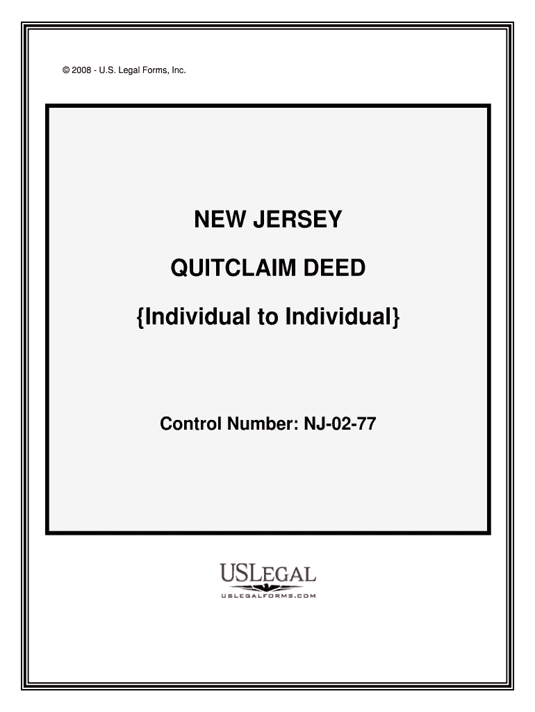 2008 U.S. Legal Forms, Inc. NEW JERSEY QUITCLAIM DEED Individual to Individual Control Number: NJ0277 I. TIPS ON COMPLETING THE FORMS The form(s) in this packet may contain form fields created using