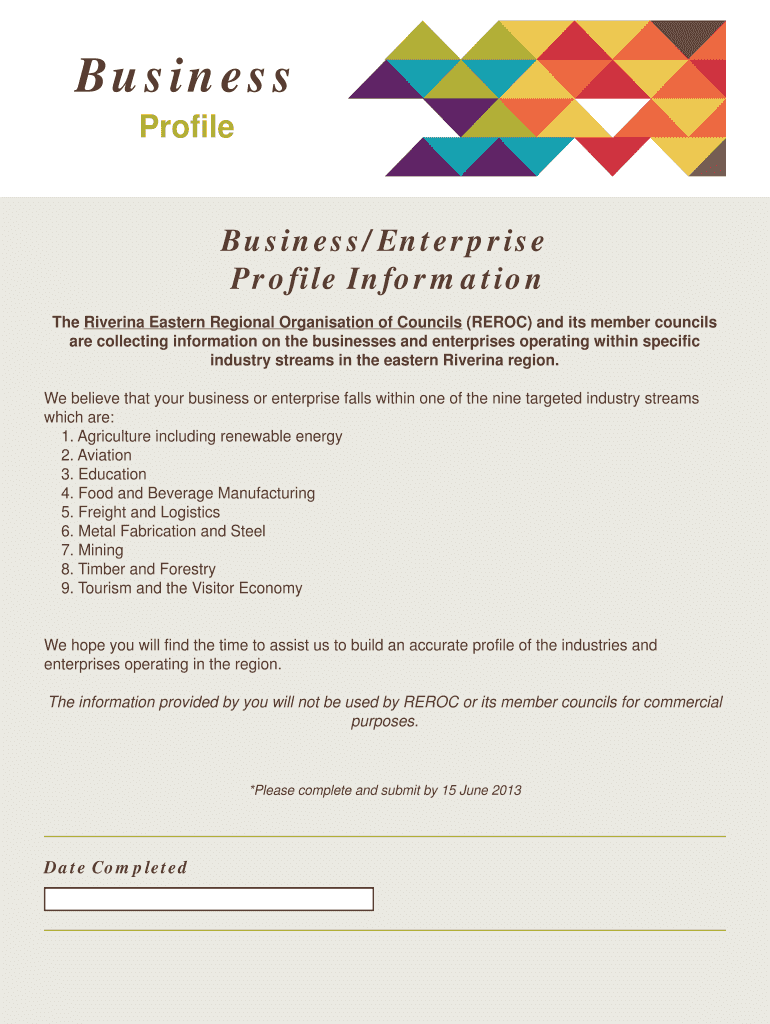 Get the free BusinessEnterprise Profile Information - Urana Shire
