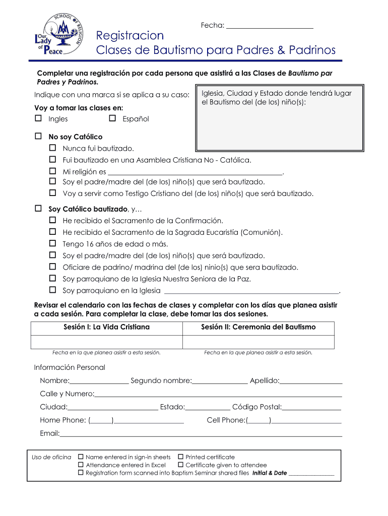 Get the free Registracion Clases de Bautismo para Padres Padrinos - olop-shrine