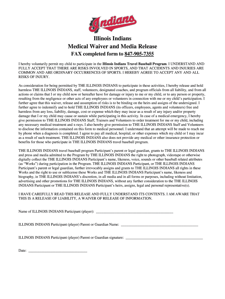 Get the free BIllinoisb Indians Medical bWaiverb and Media Release