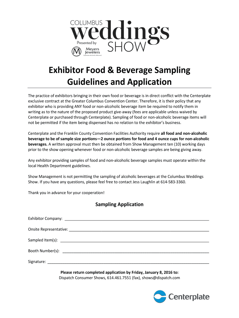 Get the free Exhibitor Food amp Beverage Sampling Guidelines and bApplicationb
