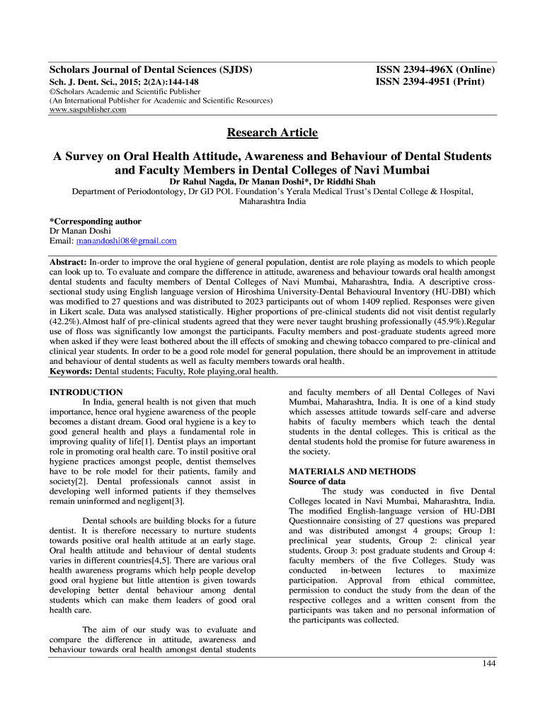 ISSN 23944951 (Print)Sch. J. Dent. Sci., 2015; 2(2A):144148