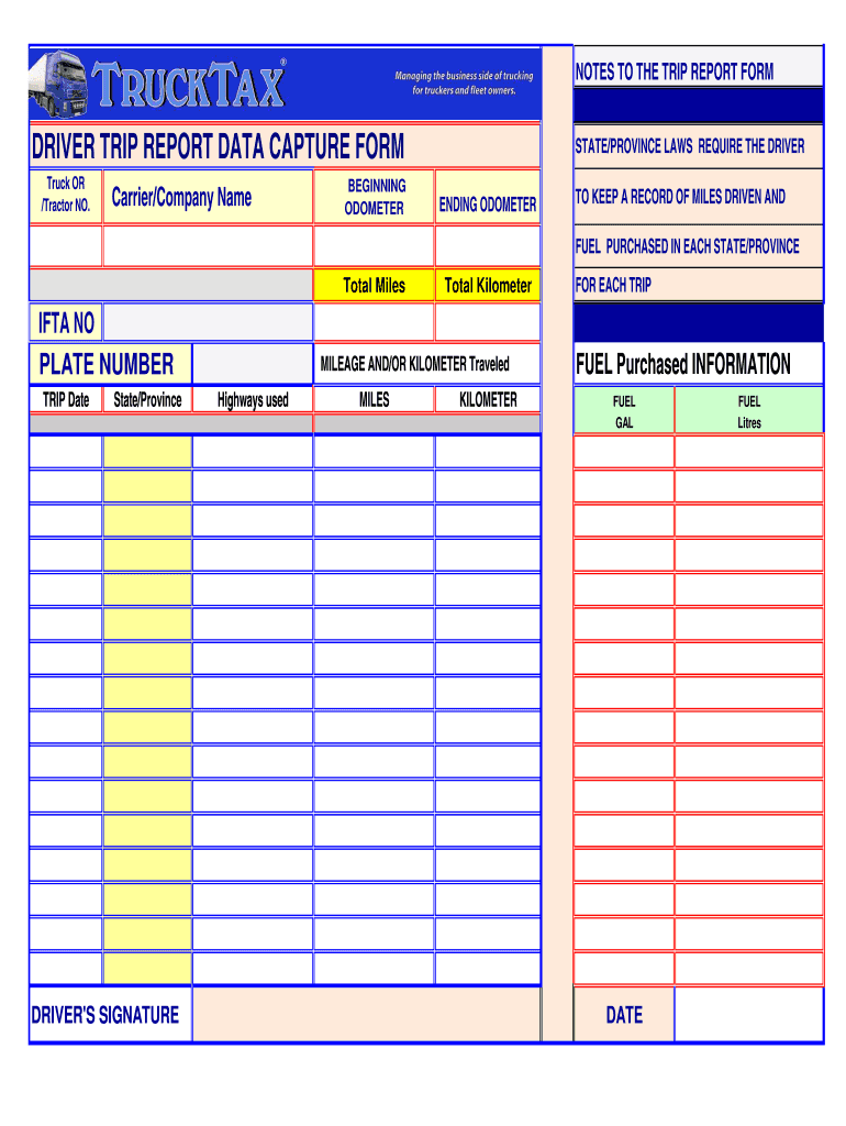 Get the free DRIVER bTRIPb bREPORTb DATA CAPTURE bFORMb STATEPROVINCE LAWS - trucktax