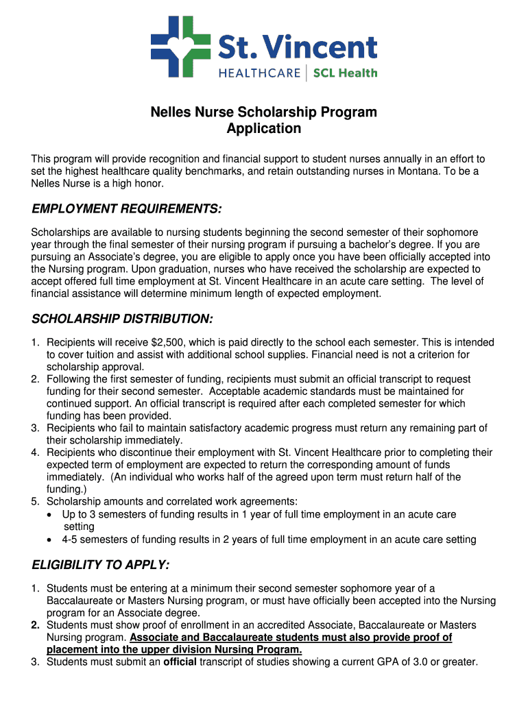 Applicants can fill out the Nelles Nurse Scholarship Program application online or submit a paper application by mail.