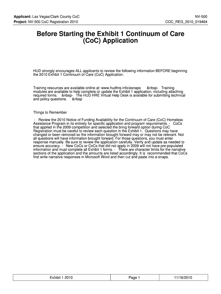 Provide accurate details regarding the specific purpose or reason for filling out exhibit 1 2010.