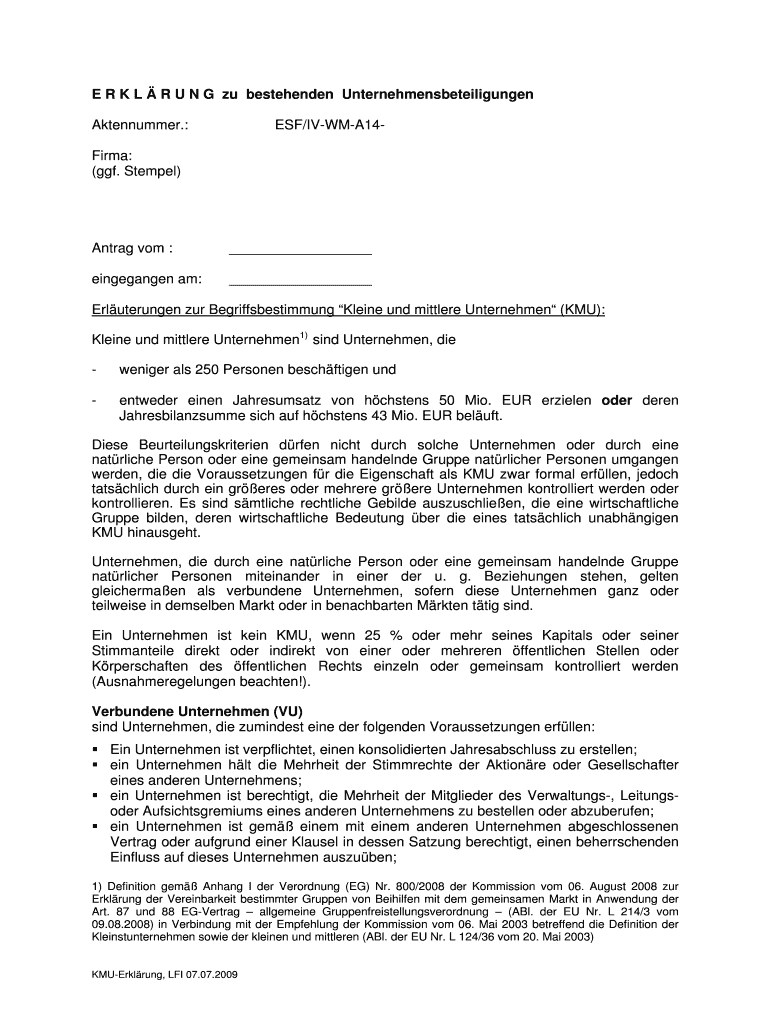 E R K L R U N G EU bestehenden Unternehmensbeteiligungen Aktennummer.: ESF/IVWMA14 Firm: (GDF. Steel) Ant rag com : eingegangen am: Erluterungen our Begriffsbestimmung Plane UND titular Unternehmen