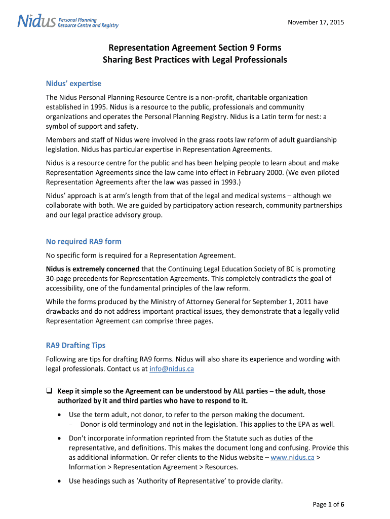 November 17, 2015, Representation Agreement Section 9 Forms Sharing Best Practices with Legal Professionals Sides expertise The Sides Personal Planning Resource Center is a nonprofit, charitable organization