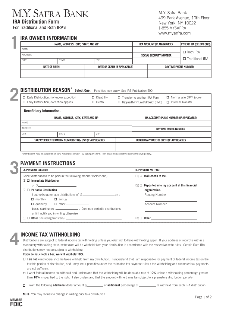 M.Y. Sara Bank 499 Park Avenue, 10th Floor New York, NY 10022 IRA Distribution Form For Traditional and Roth IRA's 1 1-855-MYSAFRA www.mysafra.com IRA OWNER INFORMATION NAME, ADDRESS, CITY, STATE