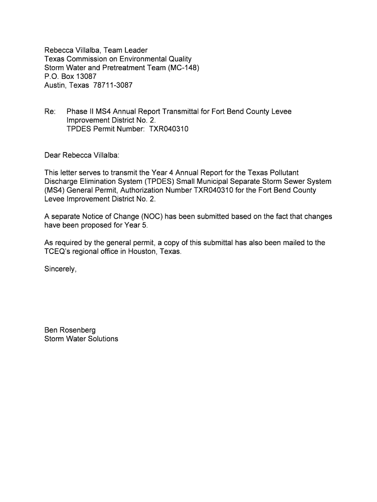 Get the free Phase II MS4 Annual Report Transmittal for Fort Bend County Levee Improvement Distri...