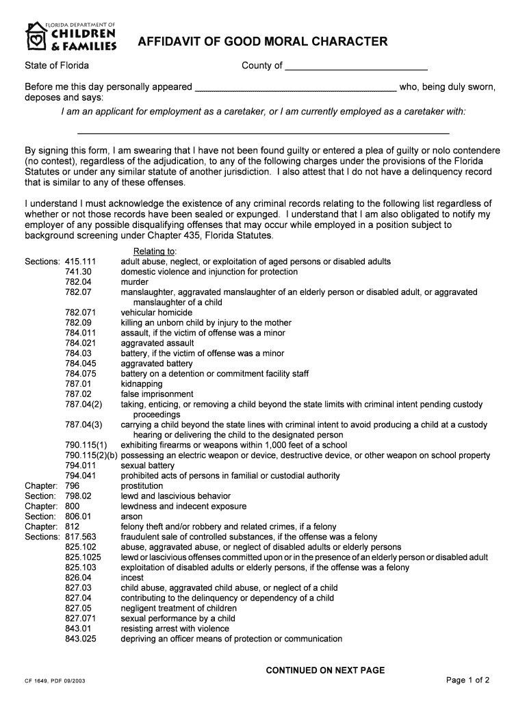 Get the free AFFIDAVIT OF GOOD MORAL CHARACTER - Wayside Baptist Church