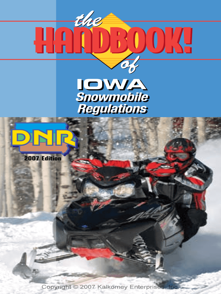IOWASnowmobile Snowmobile Regulations Regulations2007 EditionCopyright 2007 Galloway Enterprises, Inc. Iowa Department of Natural Resources Mission: To provide sustainable, responsible recreational