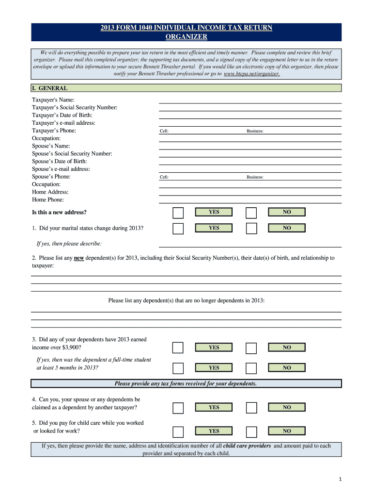 Get the free B2013 formb 1040 individual income tax return bb - Bennett Thrasher