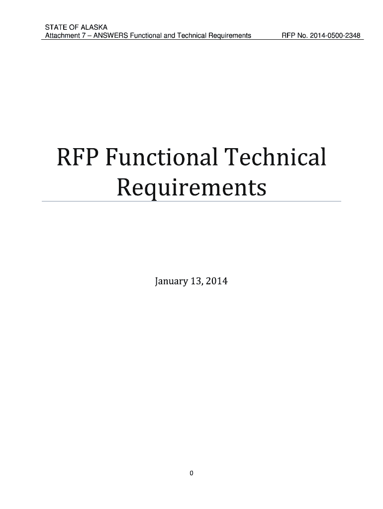 STATE OF ALASKA Attachment 7 ANSWERS Functional and Technical Requirements RFP No. 201405002348 RFP Functional Technical Requirements January 13, 2014 0 STATE OF ALASKA Attachment 7 ANSWERS Functional