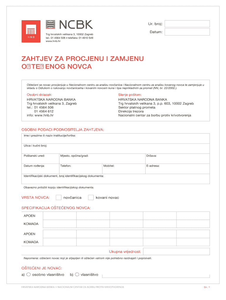 Get the free NCBK zahtjev za procjenu - hnbhr