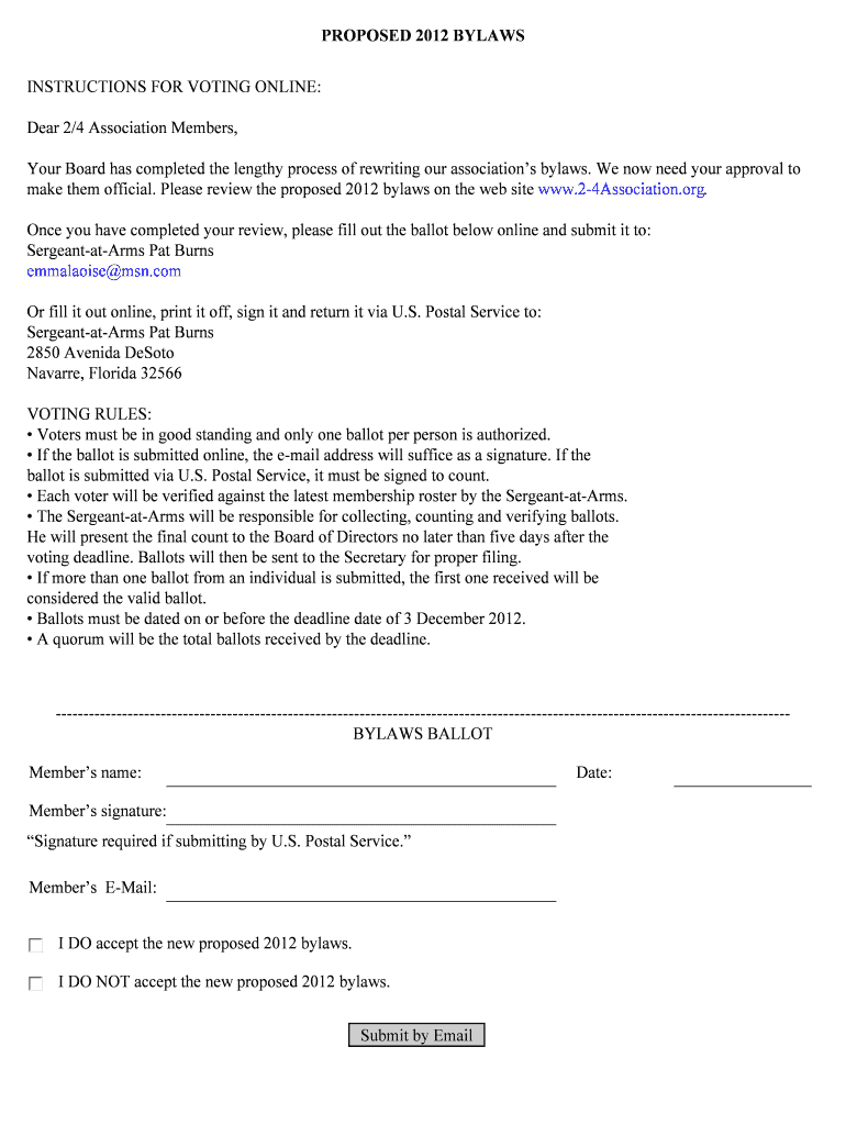 Get the free PROPOSED 2012 BYLAWS - 2-4associationorg
