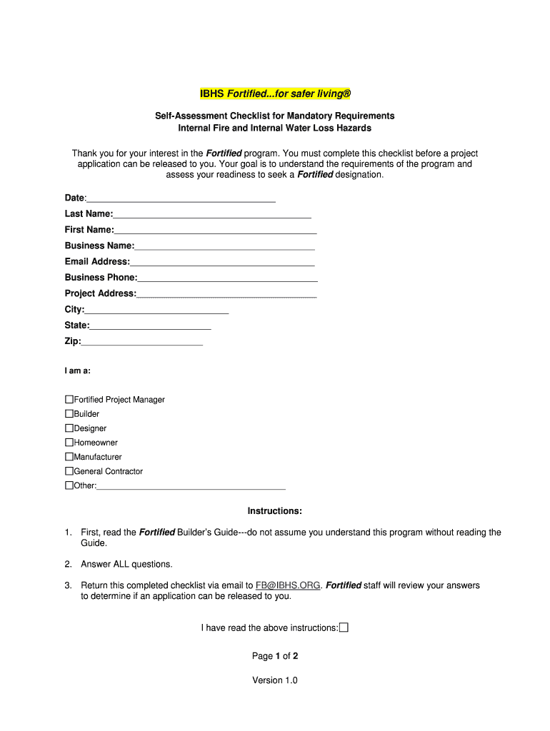IHS Fortified...for safer living Reassessment Checklist for Mandatory Requirements Internal Fire and Internal Water Loss Hazards Thank you for your interest in the Fortified program. You must complete